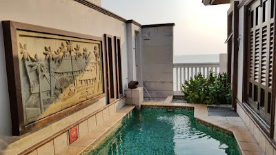 Saya ni bukan orang berada. Ini pertama kali saya jejak kaki dalam hotel atas air yang ada private pool. Ngee. Selama ni kalau pergi laut mana mampu nak duduk kat hotel mewah atas air. Tapi masa saya book tu Grand Lexis PD ni harganya agak mampu-milik lah. Nanti saya story pasal harga.
